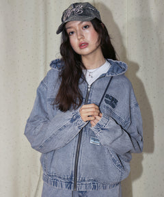 sqnzから加工感のあるボディーにシンプルなワンポイント刺繍が入ったイケてるデニムジップパーカーが新登場!韓国を中心に流行っているボディに部分的にブリーチを施したデザインが◎トレンド感抜群なヴィンテージライクな細部まで拘った1着!幅広いシーンで活躍するワードローブに加えたい存在感たっぷりな1着。単品でももちろん様になるアイテムでこれからの季節にぴったりなので、おすすめな商品となります。