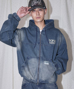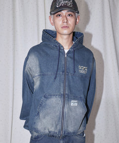 【sqnz(エスキュンズ)】sqnz washed denim jacket / ジップパーカー ワイドシルエット 刺繍 男女兼用