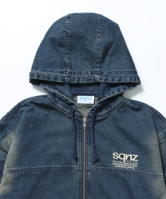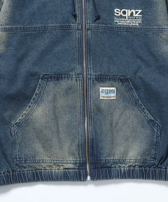 sqnz washed denim jacket / ジップパーカー フルジップ ヴィンテージライク フード オーバーダイ ブルー ≪SET UP着用可能≫