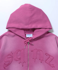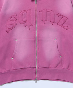 sqnz washed wappen zip p/k / フェード ジップパーカー スタッズ フルジップ オーバーサイズ ヴィンテージライク センターロゴ 裏起毛 ピンク