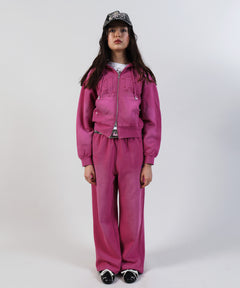 - sqnz washed wappen zip p/k / フェード ジップパーカー スタッズ フルジップ オーバーサイズ ヴィンテージライク センターロゴ 裏起毛 ピンク