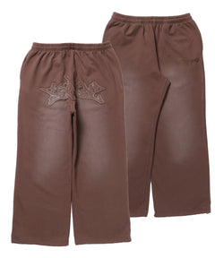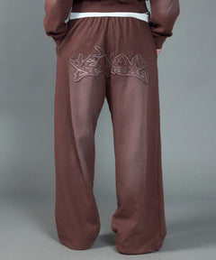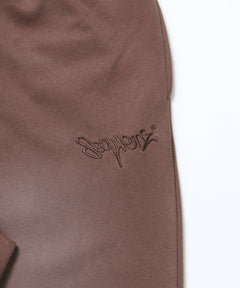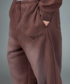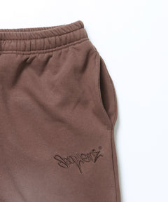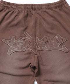 LOGO APPLIQUE SWEAT PANTS / フェード スウェット オーバーサイズ ヴィンテージライク 裏起毛 ダークブラウン