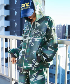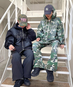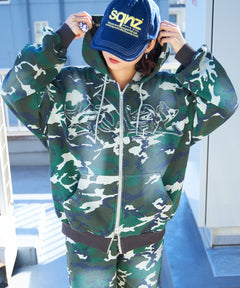SEQUENZからヴィンテージライクな加工感にセンターに共地ワッペンロゴを入れたジップパーカーが新登場!韓国を中心に流行っているスプレーブリーチデザインと、センターの共布ワッペンを施した細部まで拘った存在感たっぷりな1着。ダブルジップ仕様なのでレイヤードとしても◎一癖あるデザインながら着こなしやすい1着になります!トレンドのサイジングに仕上げており太目なボトムスとの相性も良く、どんなコーディネートにも非常に合います。