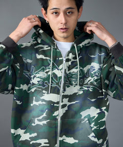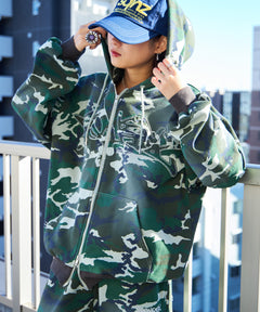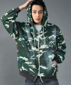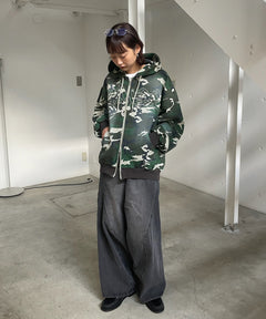 - LOGO APPLIQUE ZIP HOODIE / フェード フルジップ オーバーサイズ ヴィンテージライク センターロゴ 裏起毛 柄80 ≪SET UP着用可能≫