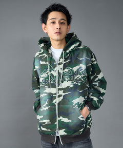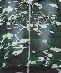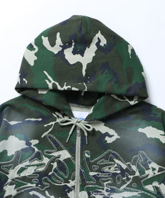 LOGO APPLIQUE ZIP HOODIE / フェード フルジップ オーバーサイズ ヴィンテージライク センターロゴ 裏起毛 柄80 ≪SET UP着用可能≫