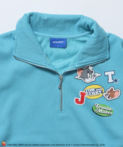 TOM and JERRY×SEQUENZからSNSでも大人気のトムジェリハーフジップがパワーアップして新登場!今回はステッカーを散りばめたようなカワイイデザインが◎ボディカラーはデザインがポップなので、グレーとブラックで落ち着いたカラーに仕上げた細部まで拘った1着!幅広いシーンで活躍するワードローブに加えたい存在感たっぷりな1着。単品でももちろん様になるアイテムなのでこれからの季節にぴったりなので、おすすめな商品となります。