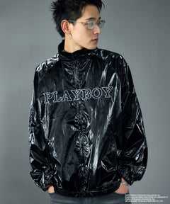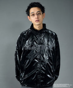 PB COATING JACKET / プレイボーイ ジャケット コーティング フルジップ センターロゴ ブラック