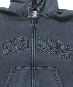 【BEN DAVIS(ベンデイビス)】LETTERS FADED ZIP HOODIE / ワイドシルエット カレッジロゴ 男女兼用 刺繍