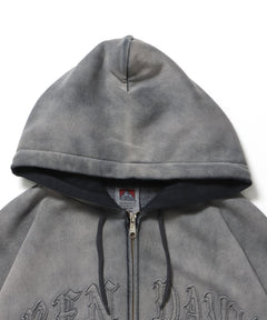 LETTERS FADED ZIP HOODIE / オーバーサイズ 裏起毛 パーカー ジップ フード ヴィンテージライク ブラック系