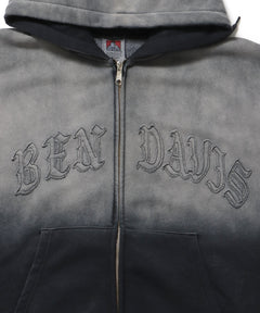 【BEN DAVIS(ベンデイビス)】LETTERS FADED ZIP HOODIE / ワイドシルエット カレッジロゴ 男女兼用 刺繍
