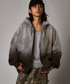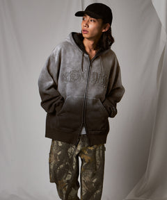 - LETTERS FADED ZIP HOODIE / オーバーサイズ 裏起毛 パーカー ジップ フード ヴィンテージライク ブラック系