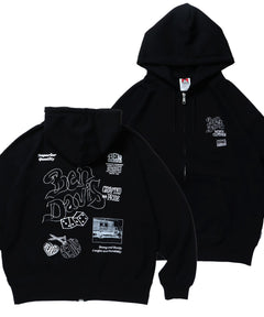 【BEN DAVIS(ベンデイビス)】ROUGH IDEAS ZIP HOODIE / プリント 刺繍 オーバーサイズ 男女兼用