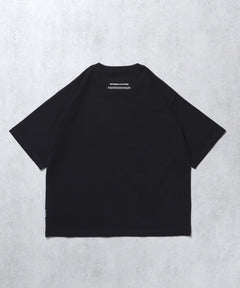 - メッセージロゴショート丈Tシャツ / ぼかしロゴ Tシャツ 短丈 クルーネック 半袖 ブラック