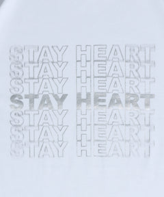 メッセージロゴショート丈Tシャツ / ぼかしロゴ Tシャツ 短丈 クルーネック 半袖 ホワイト×シルバー