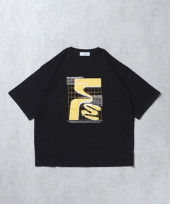 アートデザインショート丈Tシャツ / Tシャツ 短丈 クルーネック 半袖 ブラック