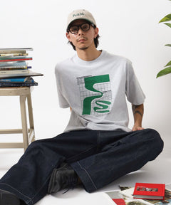 アートデザインショート丈Tシャツ / Tシャツ 短丈 クルーネック 半袖 アッシュグレー