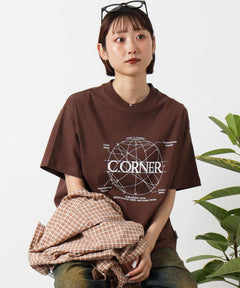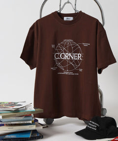 サークルアート線画プリントTシャツ / 男女兼用 レギュラーサイズ ワンポイント シンプル アートT ブラウン