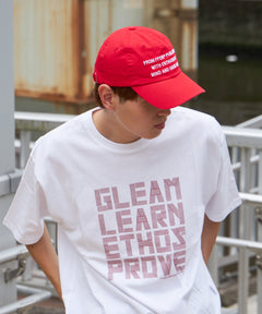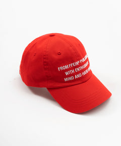 - 3段メッセージ刺繍キャップ / 深めキャップ レッド