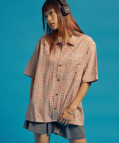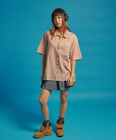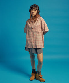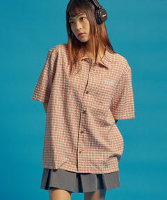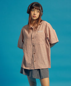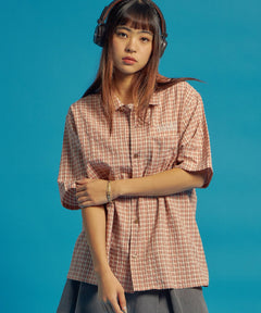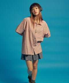 - SQNZ APPLIQUE CHECK SHIRTS / シャツ ショート丈 チェック 半袖 刺繍 ピンク