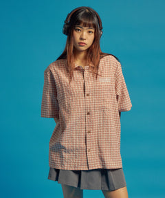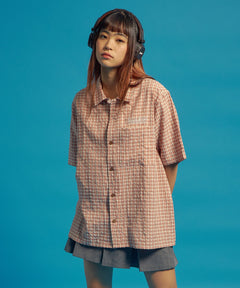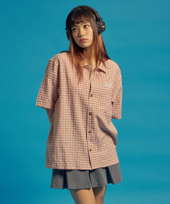 SQNZ APPLIQUE CHECK SHIRTS / シャツ ショート丈 チェック 半袖 刺繍 ピンク