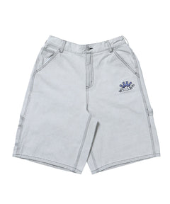 - BACK EMB. SHORT DENIM / デニム パンツ 半ズボン ショーツ ワンポイント 刺繍 ライトグレー