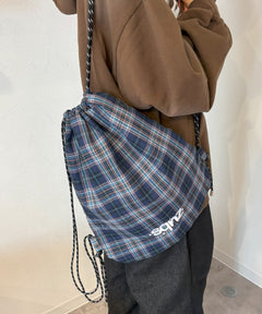 - sqnz dairy 2way knapsack / ナップサック バック 2WAY ブランドロゴ チェック ストライプ ネイビー