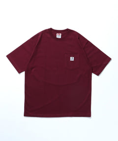 BIG POCKET TEE / ポケット 半袖 ワンポイント ワイドシルエット ヘビーウエイト クルーネック ワイン