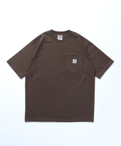 BIG POCKET TEE / ポケット 半袖 ワンポイント ワイドシルエット ヘビーウエイト クルーネック ダークブラウン