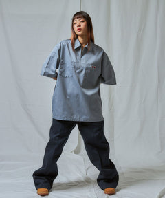 - 1/2 ZIP S/S SHIRT / シャツ レギュラー ワンポイント シンプル ハーフジップ ライトグレー