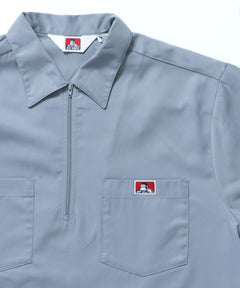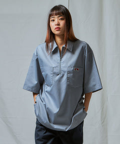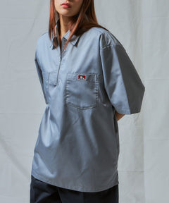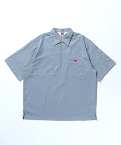 【BEN DAVIS(ベンデイビス)】1/2 ZIP S/S SHIRT / ワイドシルエット 男女兼用 ドロップショルダー 高密度ツイル