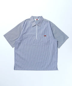 【BEN DAVIS(ベンデイビス)】1/2 ZIP S/S SHIRT / ワイドシルエット 男女兼用 ドロップショルダー 高密度ツイル
