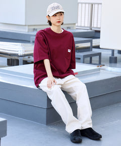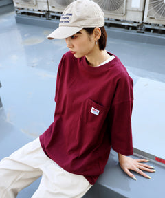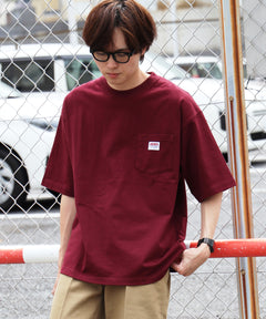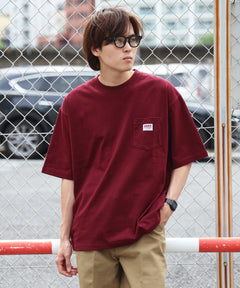 BIG POCKET TEE ZF / ポケット 半袖 ワンポイント ワイドシルエット ヘビーウエイト クルーネック ワイン