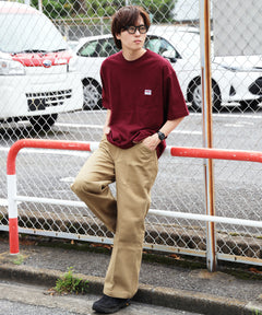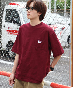 - BIG POCKET TEE ZF / ポケット 半袖 ワンポイント ワイドシルエット ヘビーウエイト クルーネック ワイン