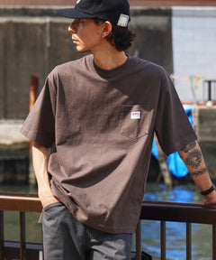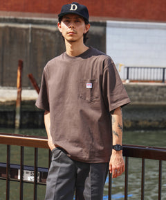 - BIG POCKET TEE ZF / ポケット 半袖 ワンポイント ワイドシルエット ヘビーウエイト クルーネック ダークブラウン