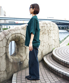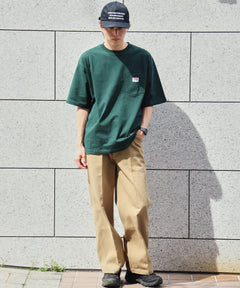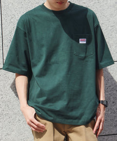 - BIG POCKET TEE ZF / ポケット 半袖 ワンポイント ワイドシルエット ヘビーウエイト クルーネック ダークグリーン