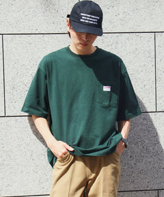 BIG POCKET TEE ZF / ポケット 半袖 ワンポイント ワイドシルエット ヘビーウエイト クルーネック ダークグリーン