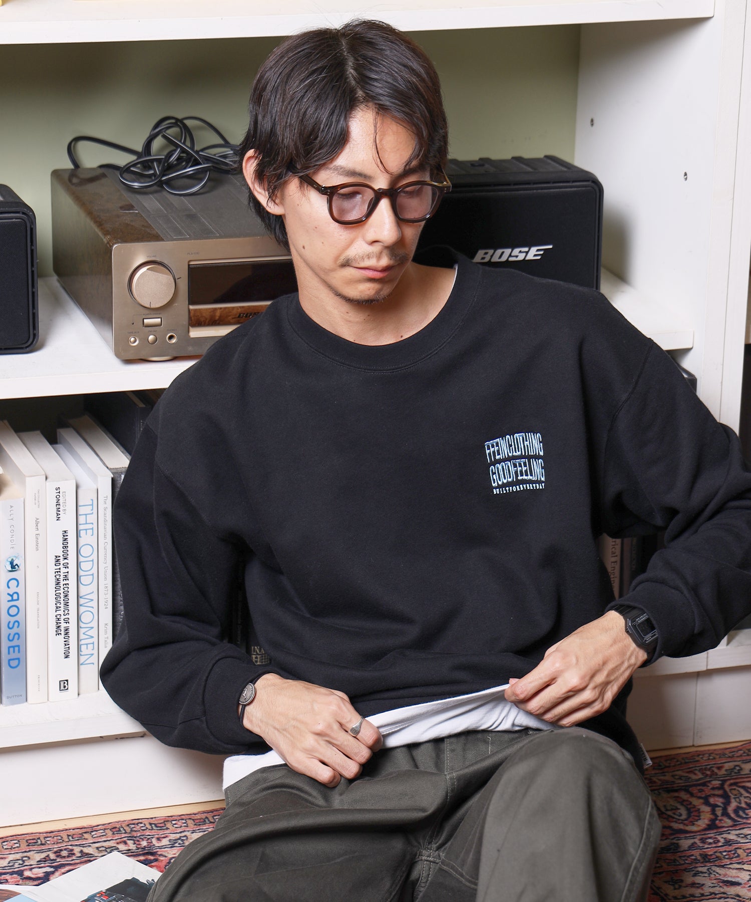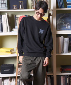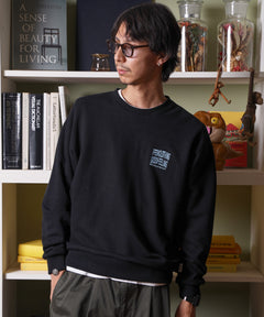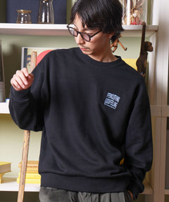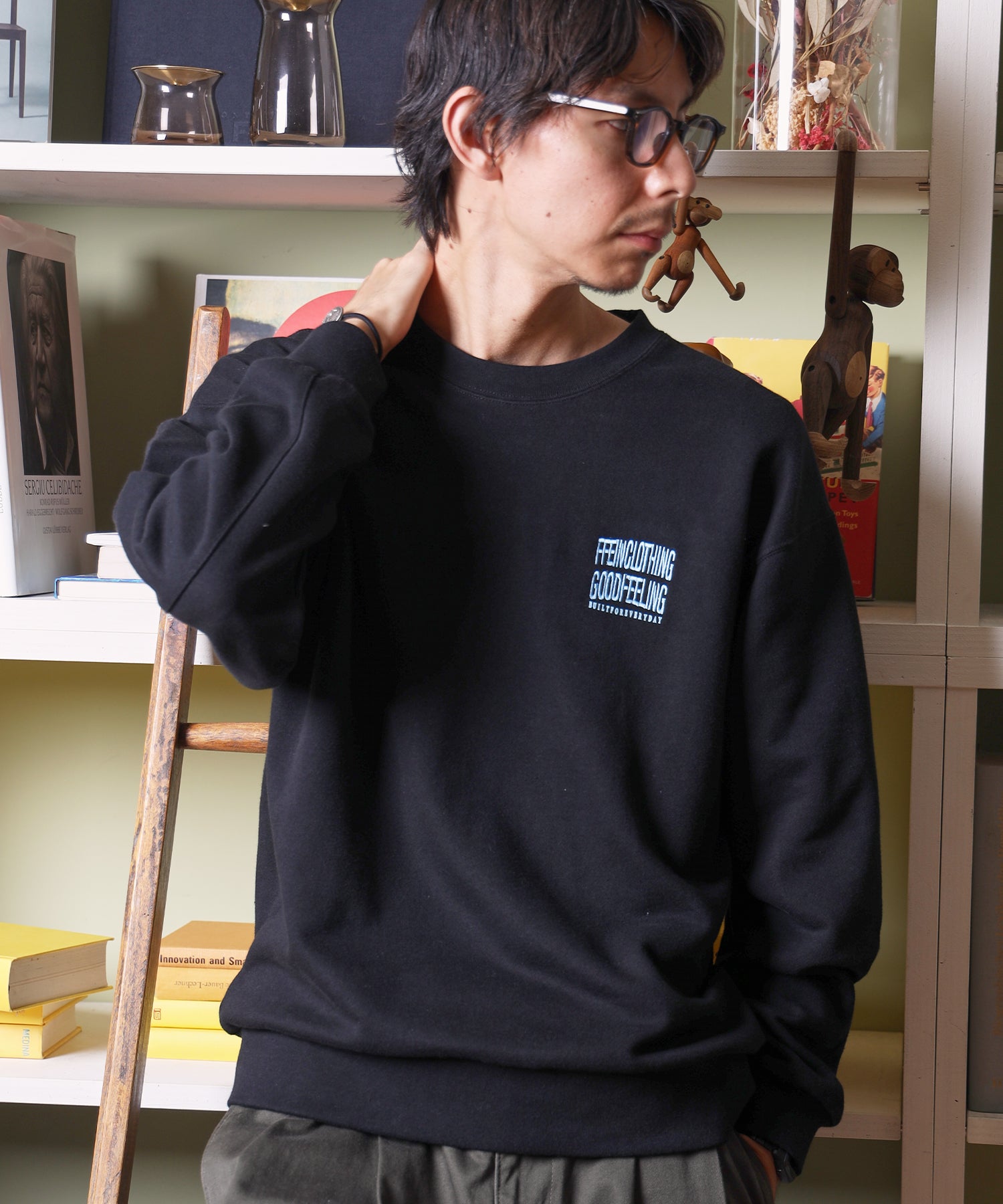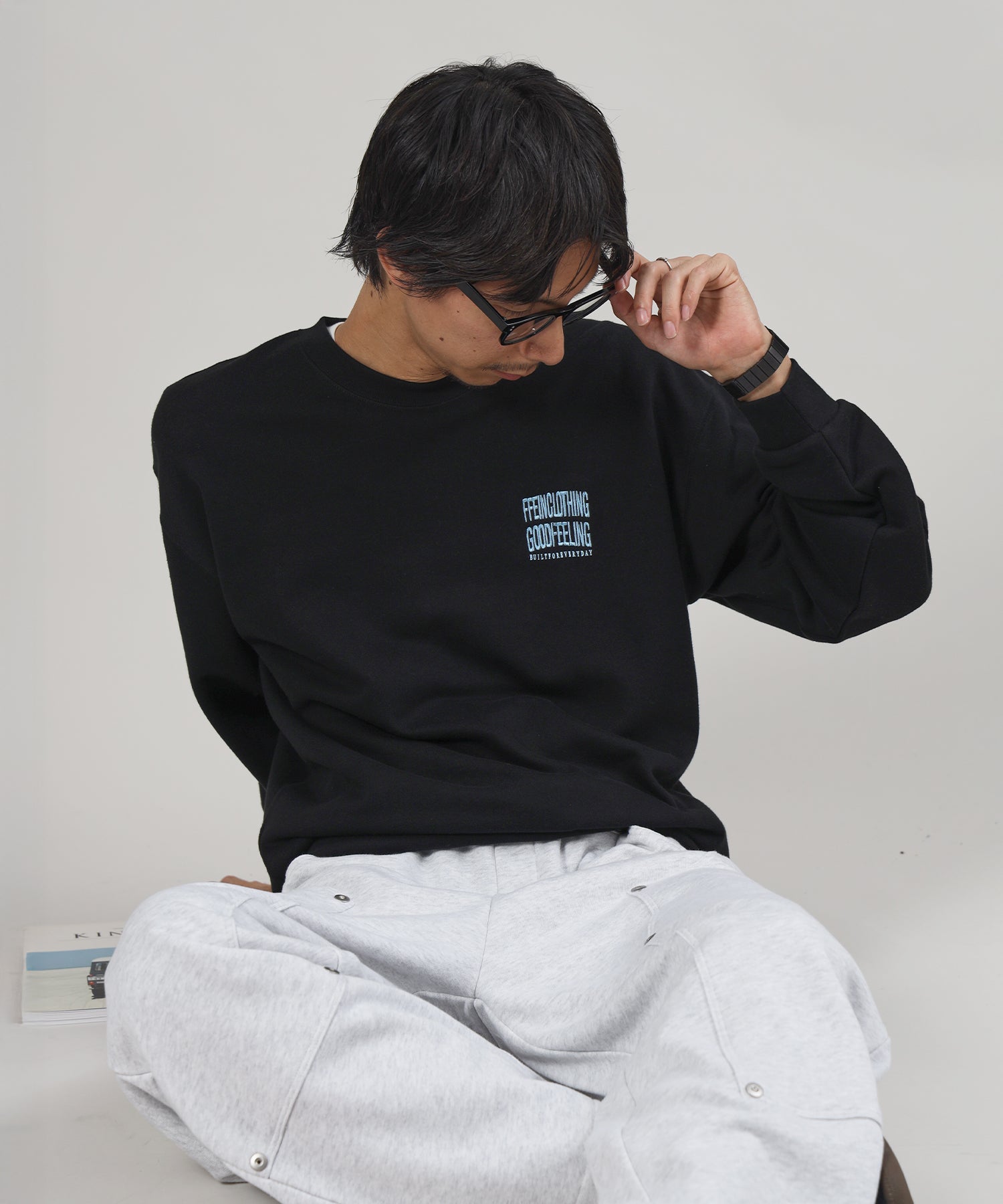 ヘビーウエイトワンポイント刺繍スウェット / スウェット トレーナー 裏毛 クルーネック ワンポイント ブラック