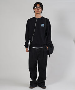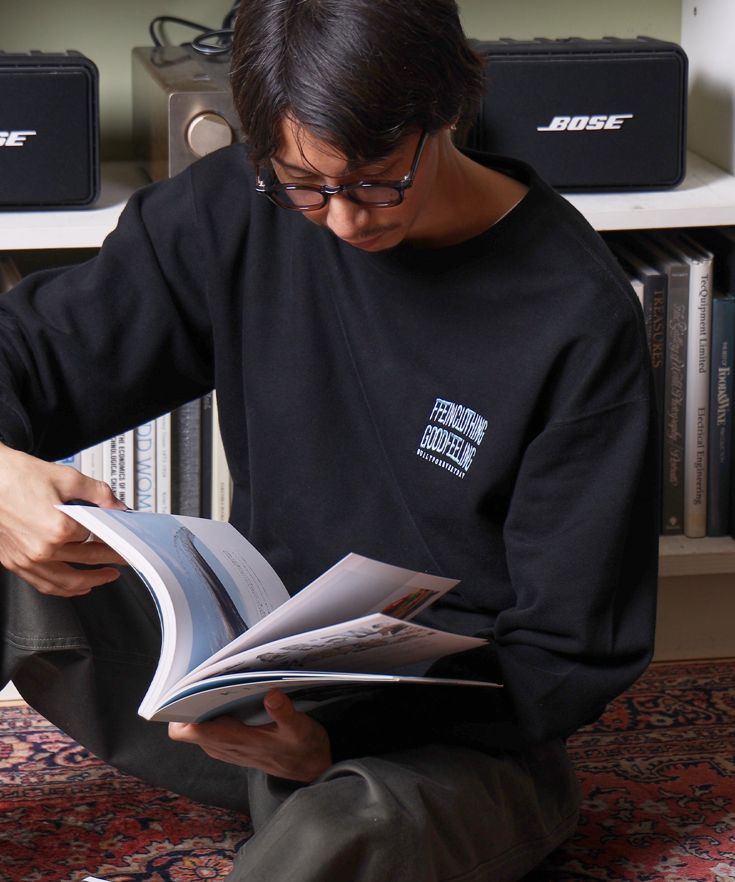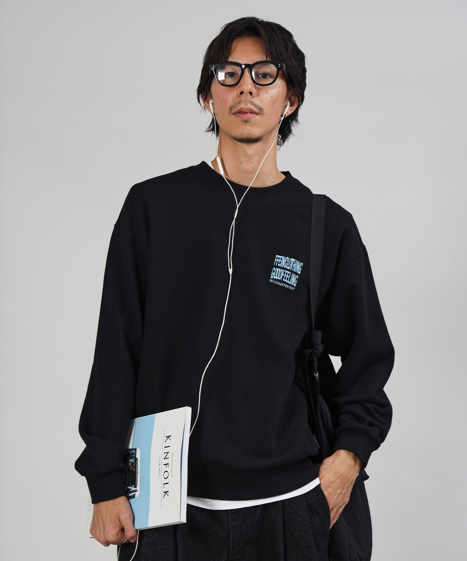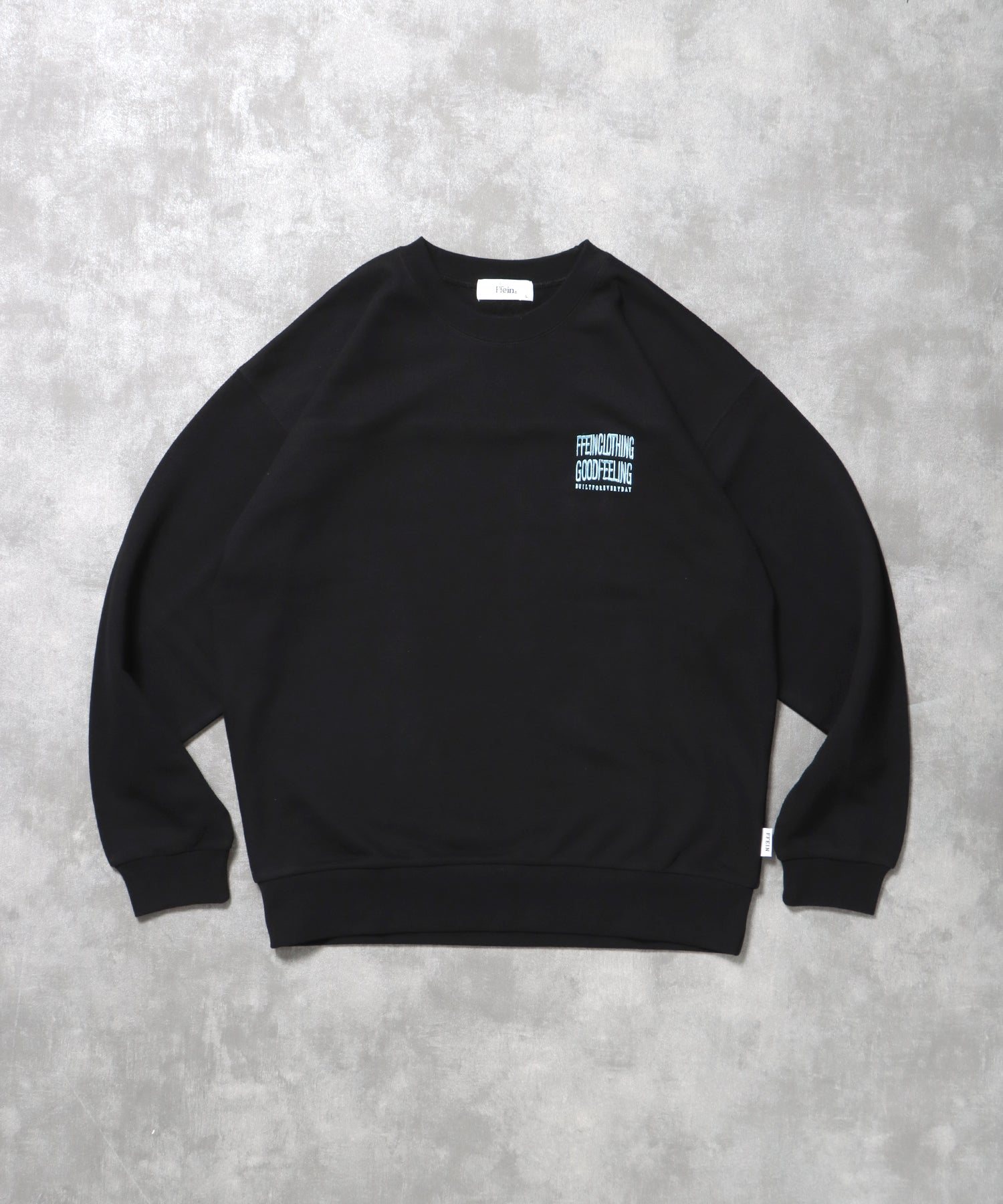 ヘビーウエイトワンポイント刺繍スウェット / スウェット トレーナー 裏毛 クルーネック ワンポイント ブラック