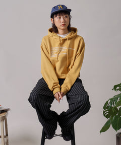 - ヘビーウエイトメッセージプルパーカー / プルオーバー パーカー 裏毛 プリント フーディ イエロー