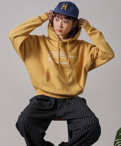 ヘビーウエイトメッセージプルパーカー / プルオーバー パーカー 裏毛 プリント フーディ イエロー