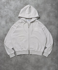 - ヘビーウエイト3段ロゴメッセージジップパーカー / ジップ パーカー 裏毛 フーディ プルオーバー ライトグレー