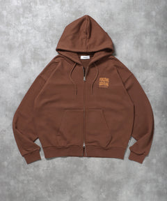 ヘビーウエイト3段ロゴメッセージジップパーカー / ジップ パーカー 裏毛 フーディ プルオーバー ブラウン