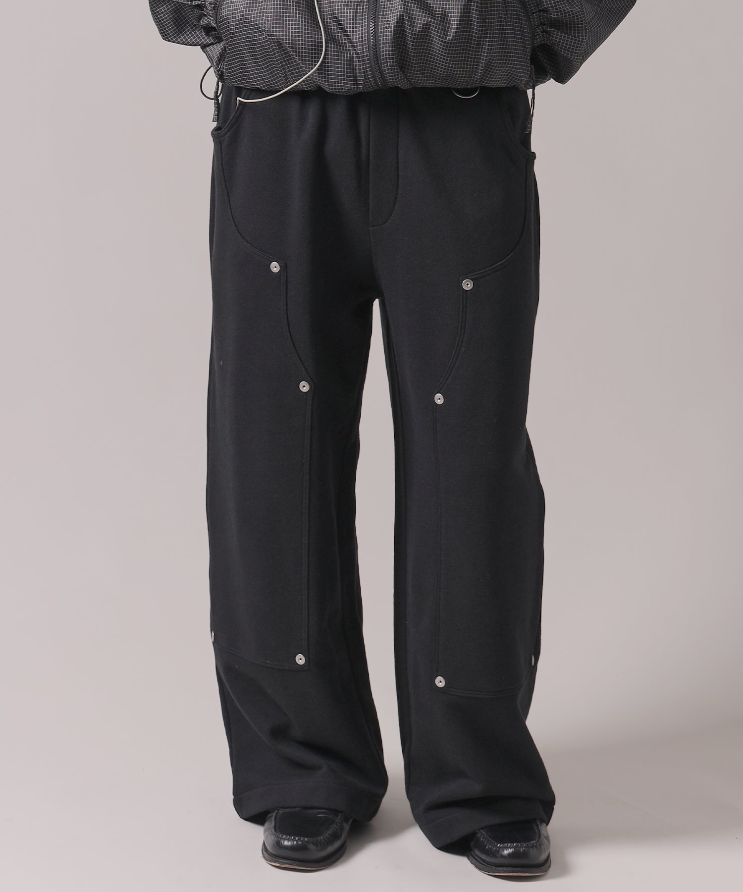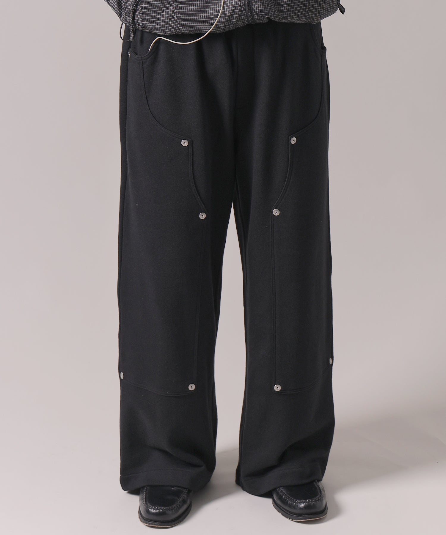 ダブルニーパギースウェットパンツ / ダブルニー スウェット 裏毛 パンツ リベット ブラック