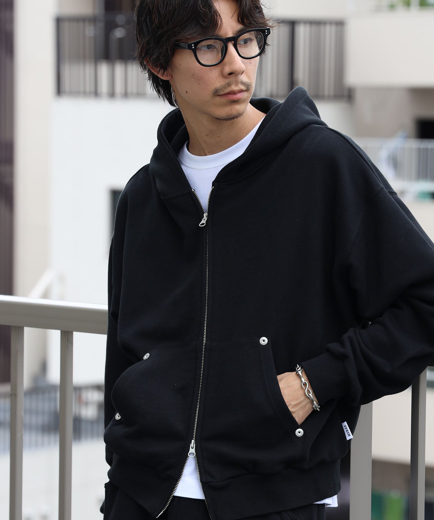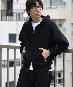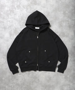 - 切り替えリベットジップパーカー 12oz /リベット ジップ パーカー 裏毛 フーディ ブラック