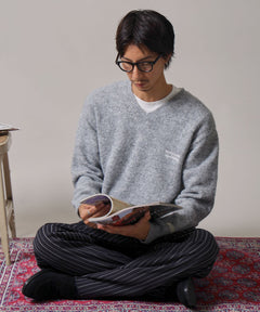 シンプルで洗練されたデザインが魅力のVネックニット。