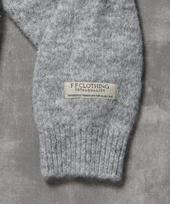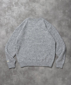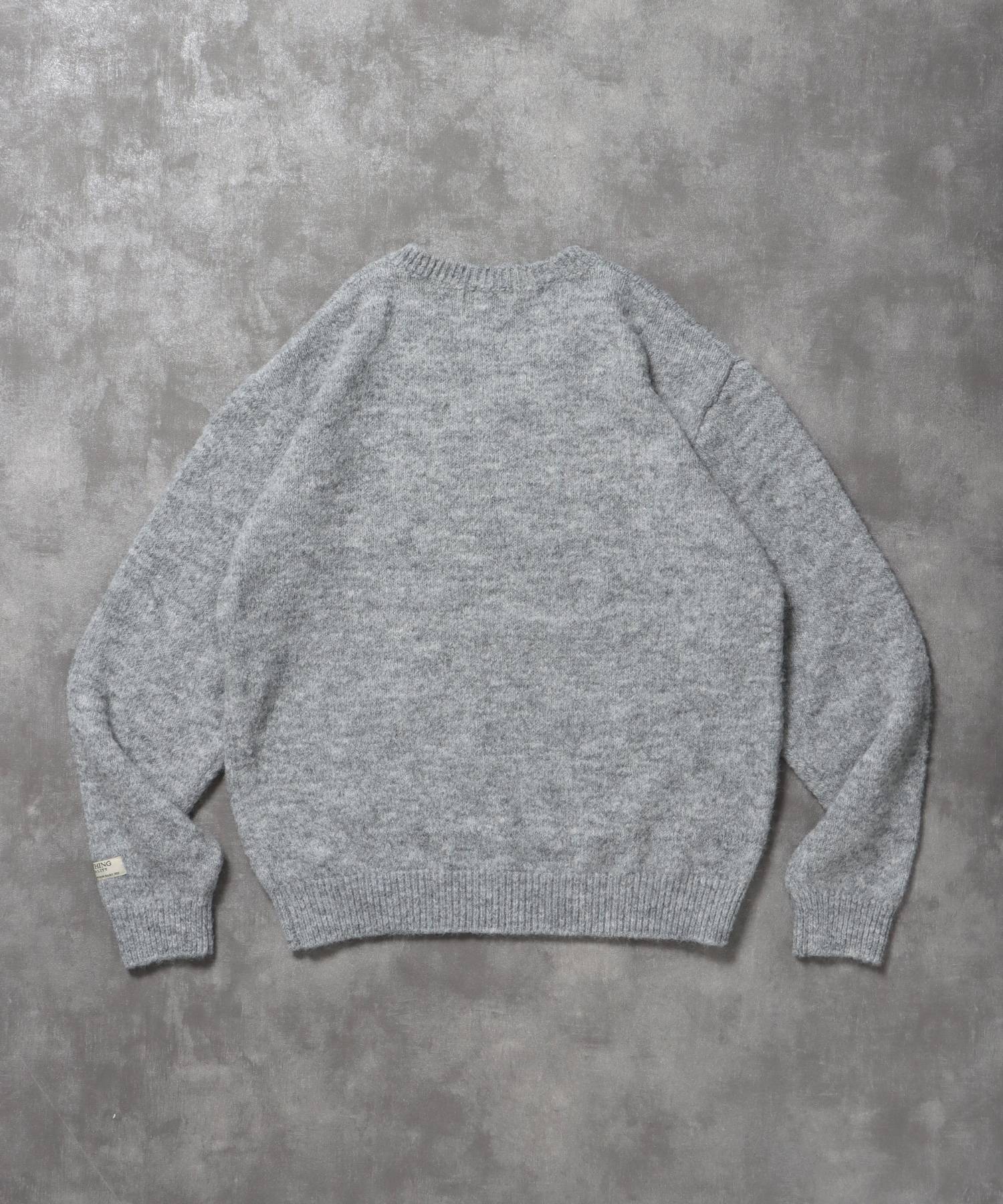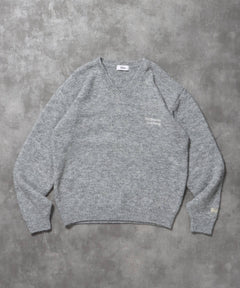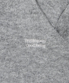 ワンポイントVネックウール混ニット / ウール ニット Vネック 短丈 刺繍 ワンポイント グレー