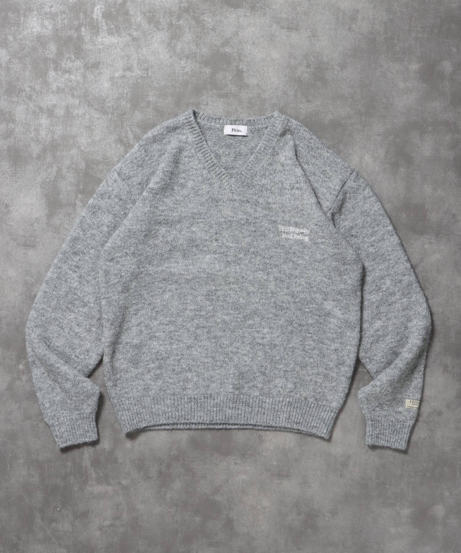 ・Vネック仕様で顔周りをすっきり見せ、レイヤードスタイルにも最適。