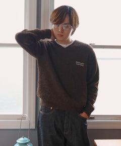 シンプルで洗練されたデザインが魅力のVネックニット。