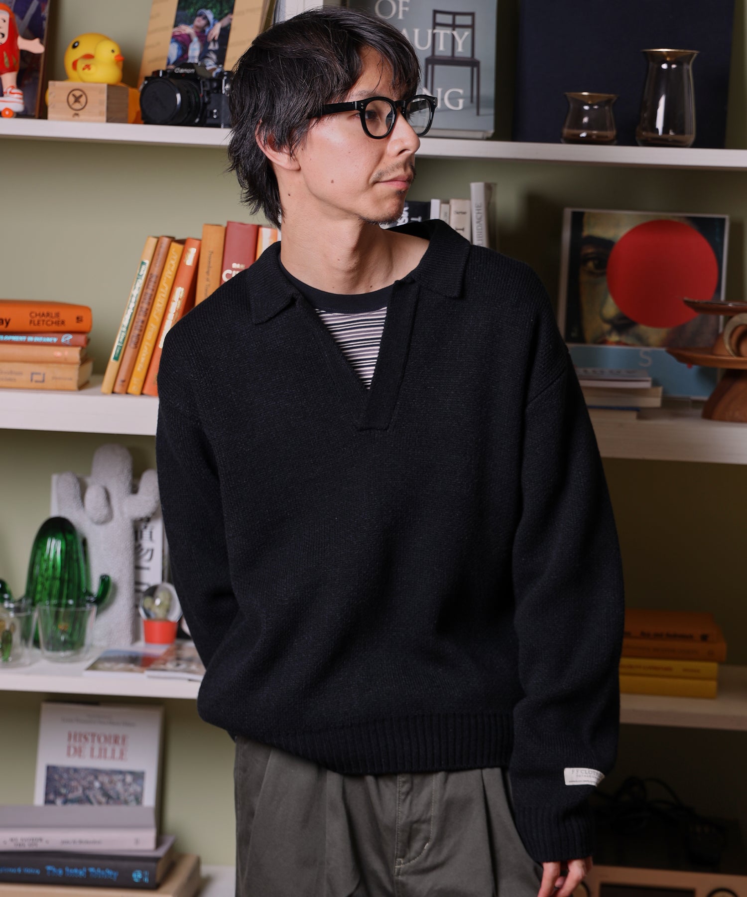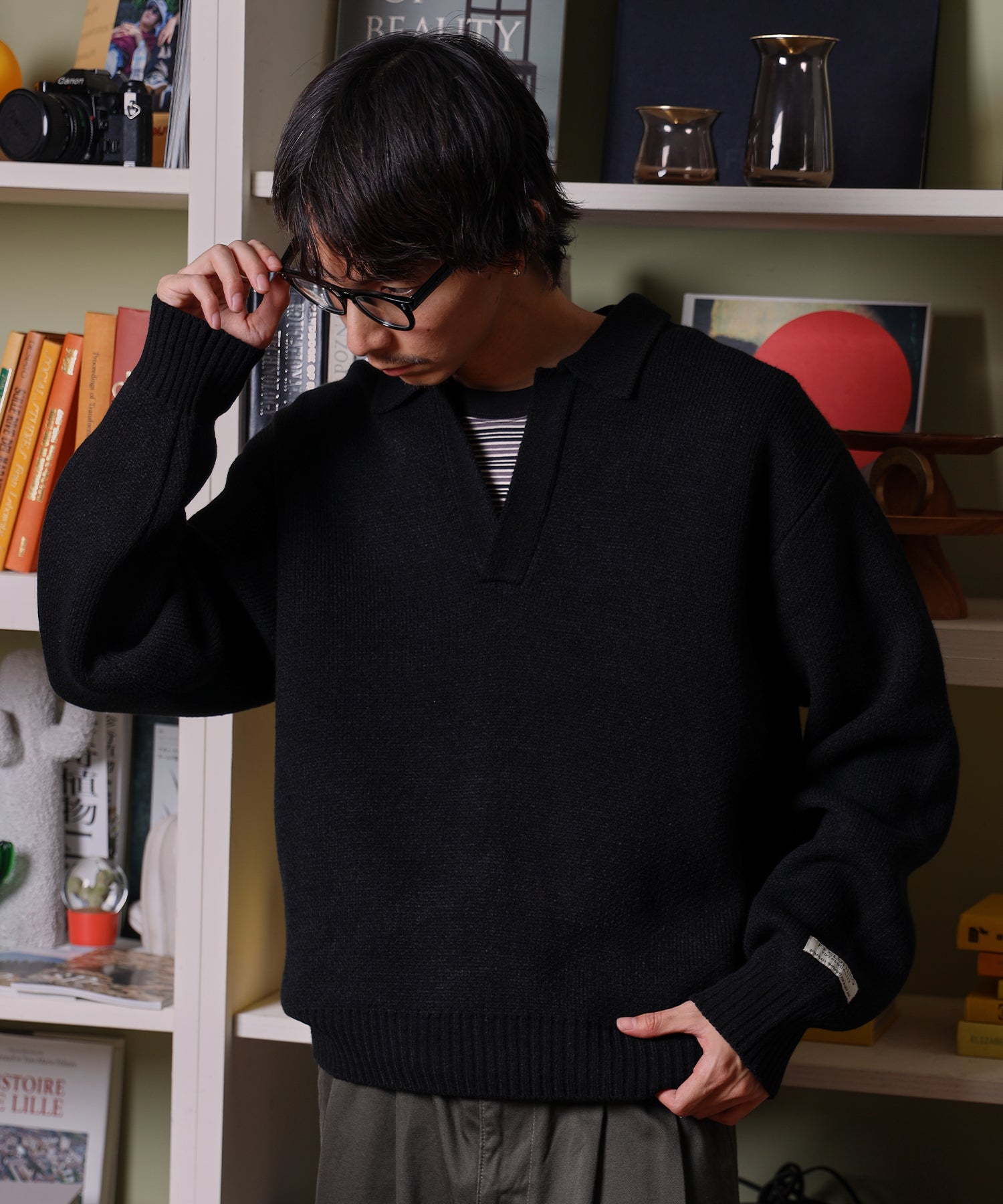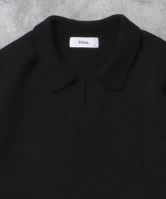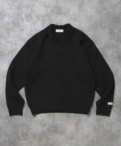 - ネーム付きスキッパーニット / ニット セーター ポロカラー シンプル 無地 ワンポイント ブラック