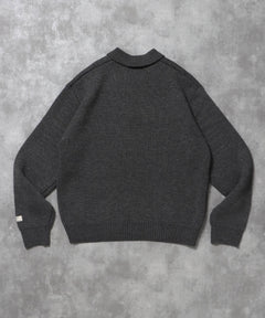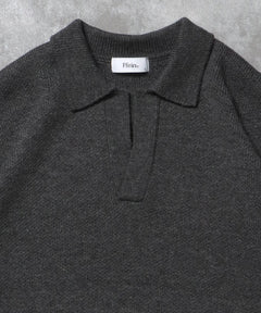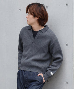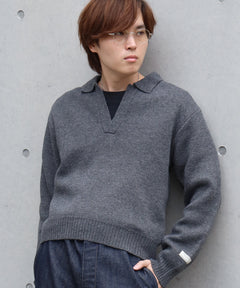 - ネーム付きスキッパーニット / ニット セーター ポロカラー シンプル 無地 ワンポイント グレー